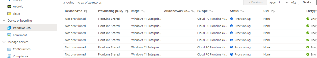 Meanwhile, our machines provisioned successfully and this is how a Frontline Shared Cloud PC look like in Intune: